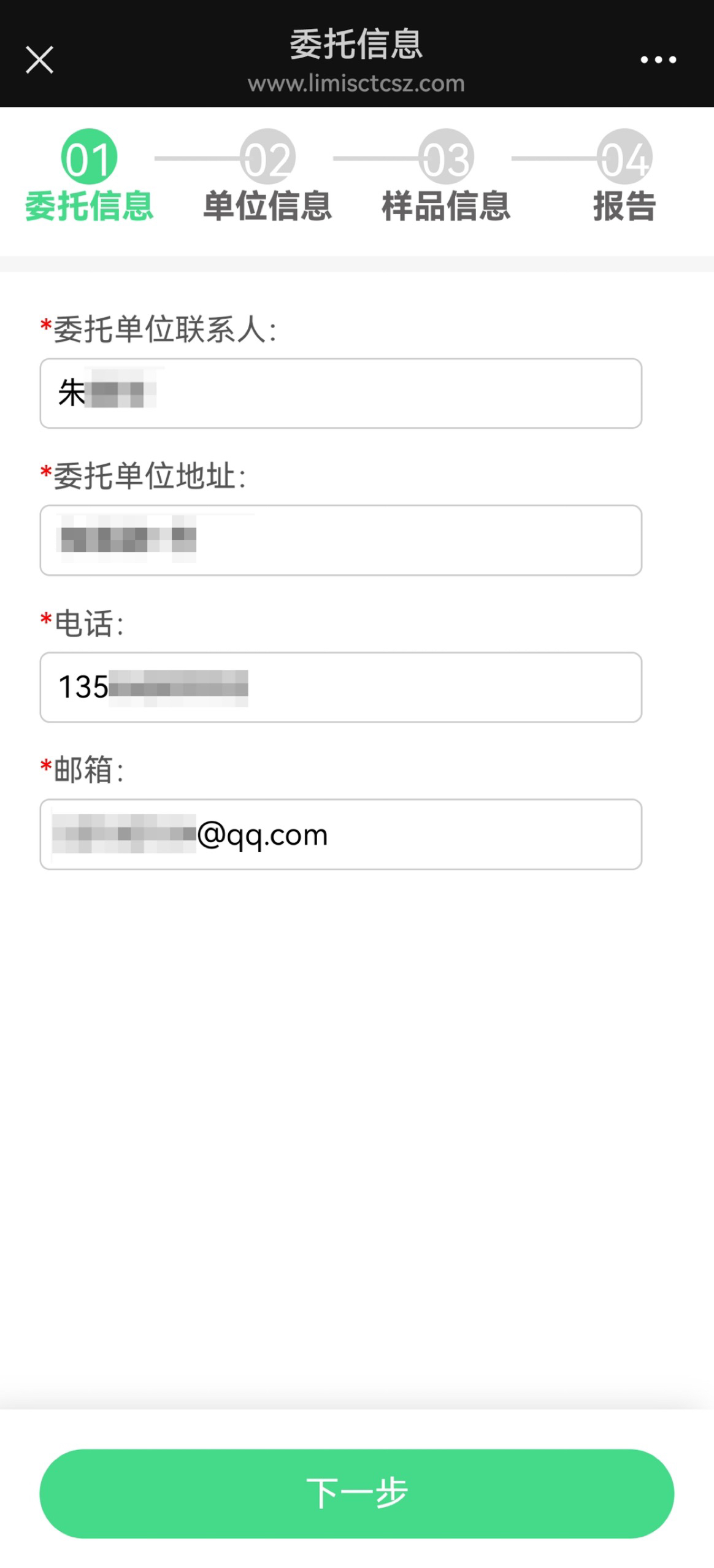 2. 輸入:委托聯(lián)系人、單位地址、電話、郵箱